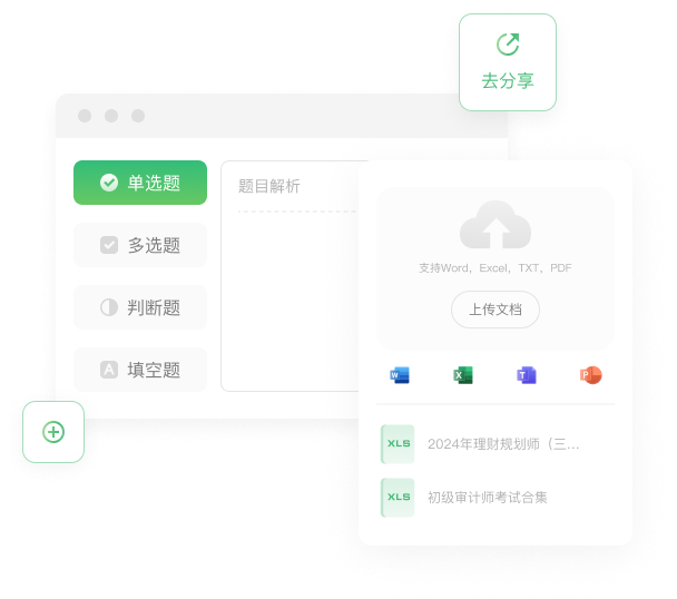 支持文档导入、批量导入和人工导题;支持Word、Excel、PDF、TXT等文档导入;